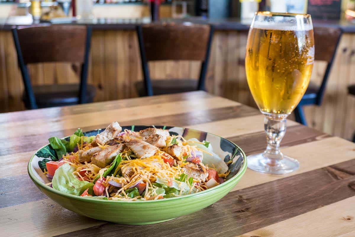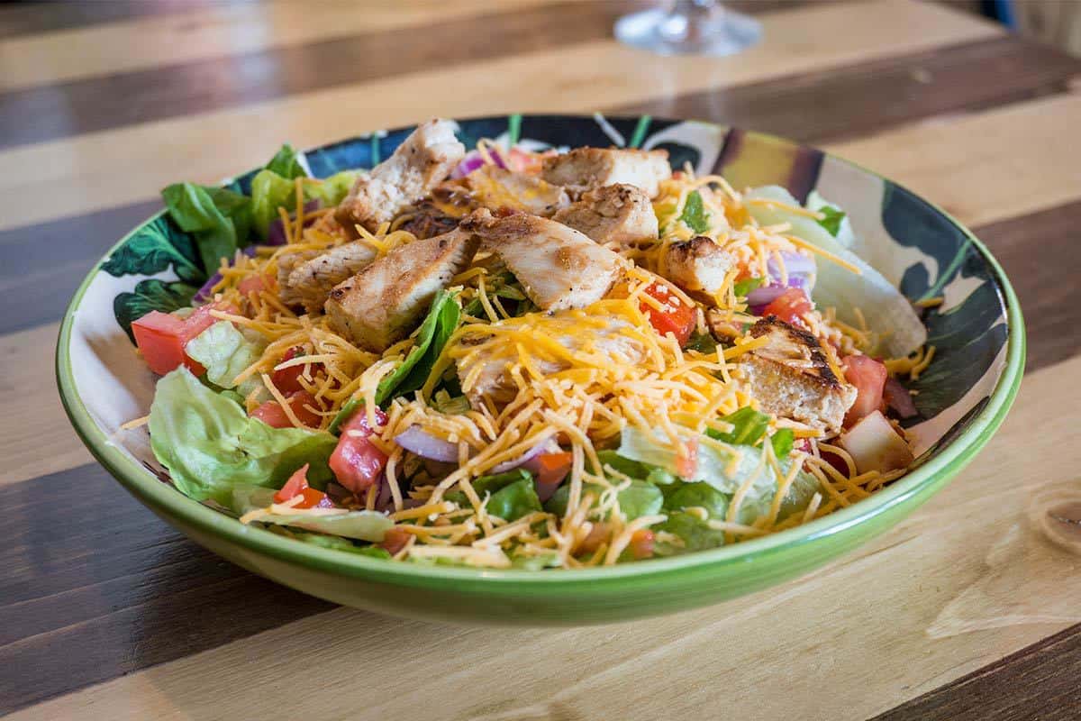 Shredded lettuce topped with seasoned beef, dice tomatoes, onions, and black olives, served with salsa and sour cream.